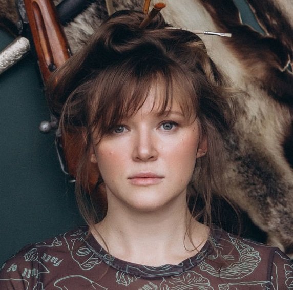 Marina works in the genre of contemporary realism, primarily creating her projects using figurative painting and graphics, complementing her classical medium works with individual objects made from various materials.